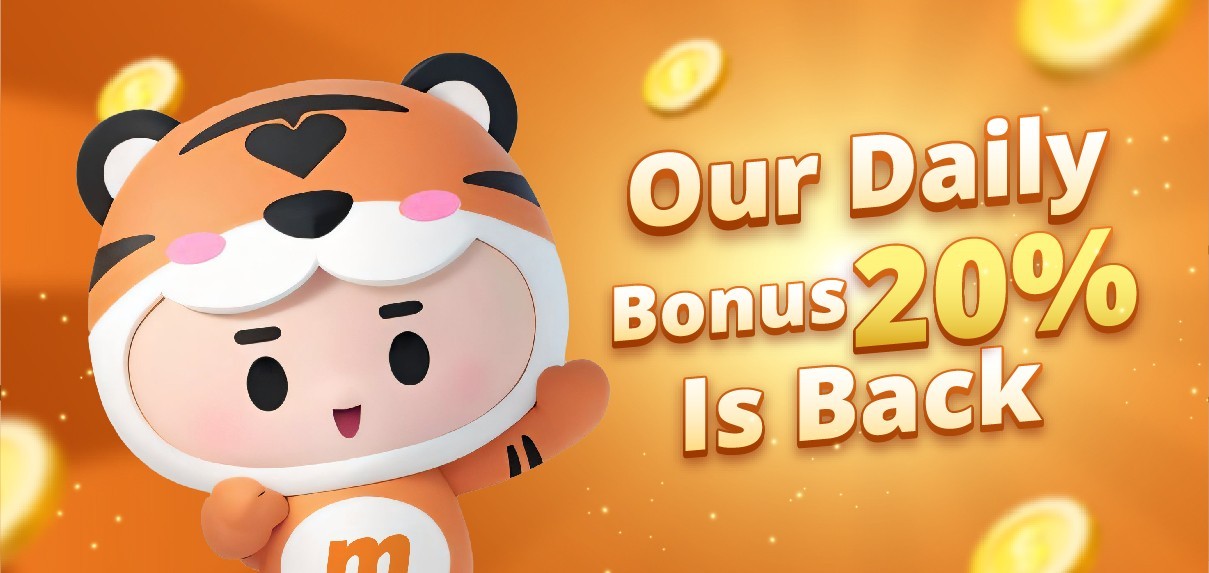 20% Daily Bonus: A rewarding daily first deposit bonus available every day. Players get an extra 20% on their first deposit of the day, encouraging you to top-up daily and play with more funds. For example, if you deposit on a given day, you’ll receive a 20% bonus boost to enjoy more games. This bonus keeps the excitement going every single day.
